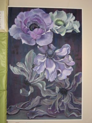 キッズコーナーの壁一面に大輪の花が咲いています。